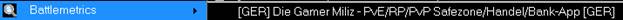 Nach Übernahme eines Servers, wird der Name des Servers im Untermenü des Eintrags „Battlemetrics“ angezeigt. Ist, bzw. wurde kein Server ausgewählt, wird an dieser Stelle „none“ angezeigt.
