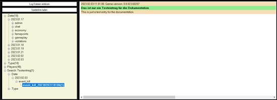 Mit der Version v3.3.8 wurde der Log Datei Viewer veröffentlicht. Der Log Datei Viewer dient dazu die Sichtung und das Lesen Log Dateien (Protokolldateien) von SCUM-Servern zu erleichtern. Die Log Dateien können ordnerweise eingelesen werden.