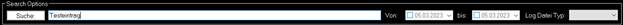 Der Inhalt der Logdateien kann durchsucht werden. Hierzu kann der Anwender einen beliebigen Text in das Suchfeld eingeben (Groß- und Kleinschreibung wird nicht berücksichtigt) und die Suche mit der Enter-Taste oder über die Schaltfläche „Suche“ starten.