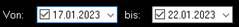 Möchte der Anwender nur Logdateien eines bestimmten Datums durchsuchen, kann er dieses Datum in der Datumsauswahl „Von“ auswählen. Durch die Auswahl wird der Haken (Checkbox) automatisch gesetzt und somit bei der Suche berücksichtigt.