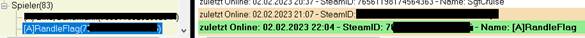 Zusätzlich werden die Informationen (zuletzt Online, Steam-ID und Spielernamen) im Listenfenster angezeigt.