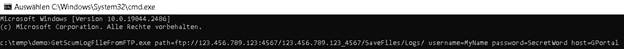 The call can be entered directly into a console. In this case, the complete path to the program "GetScumLogFileFromFTP" must either be specified, or the console must be started out of the program directory.