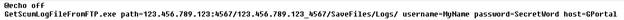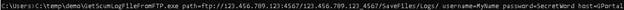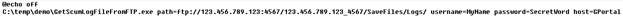 In the following examples, the program GetScumLogFileFromFTP is located in the C:\temp\demo\ directory.